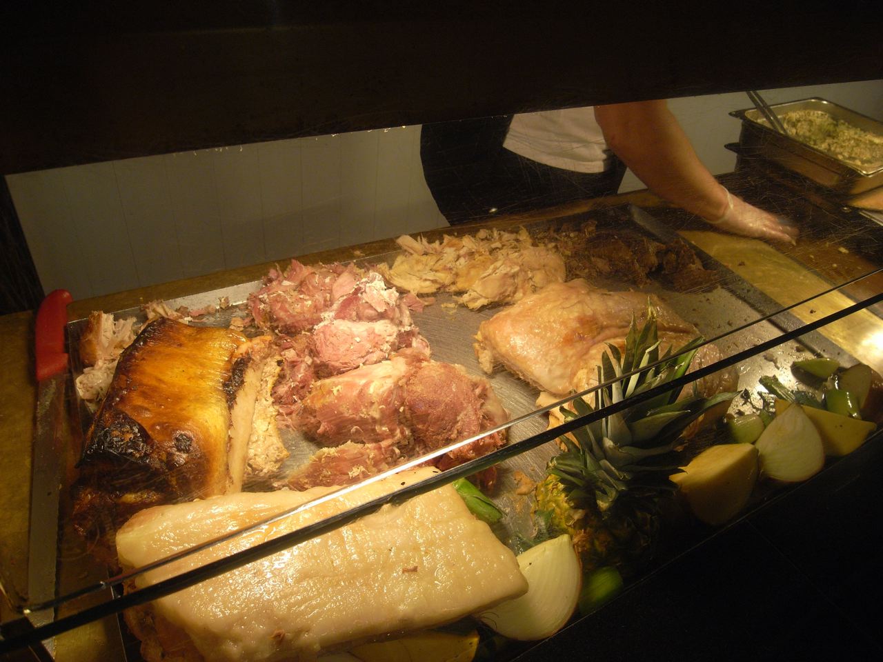 お肉を選んで、お店の人に切り分けてもらい、(僕は牛と七面鳥をチョイス)