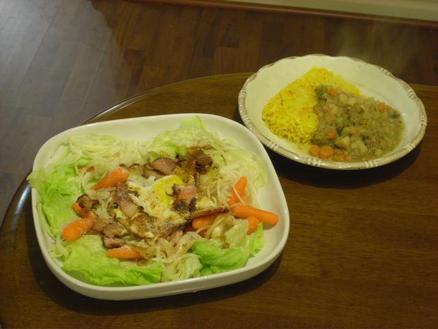 19:50 スープ仕込みながら、炒め物で簡単に済ませた。