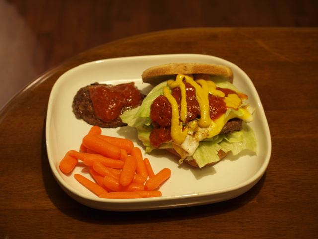 20:08 ビーフパテ買ってきて、ハンバーガー。美味しすぎて、自分でもなんでこんなんなっちゃうんだろうって不思議なほどの勢いでがっついた。