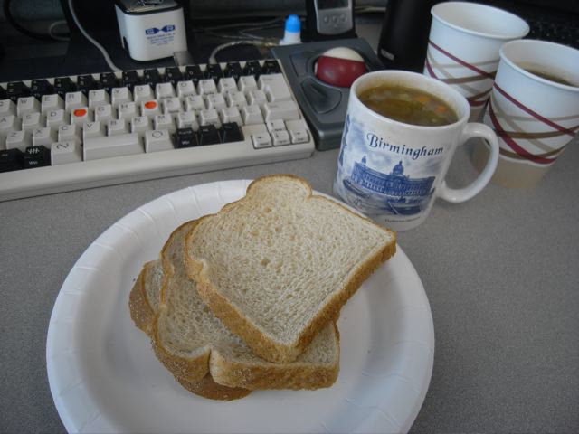 12:10 生姜入れ過ぎ、野菜みじん切りスープを真空ポットに入れて持ってきた。