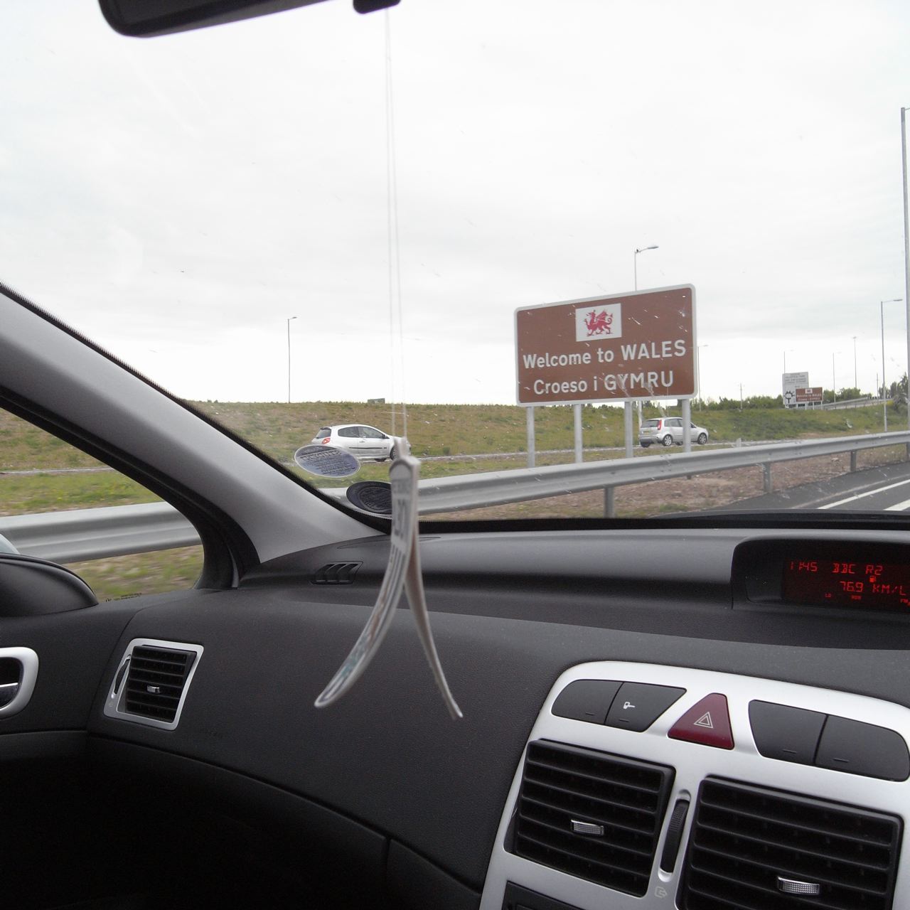 国境通過。噂には聞いていたんですが、道路標識とかみんな本当にウェールズ語との二カ国語表記になってるんですね。