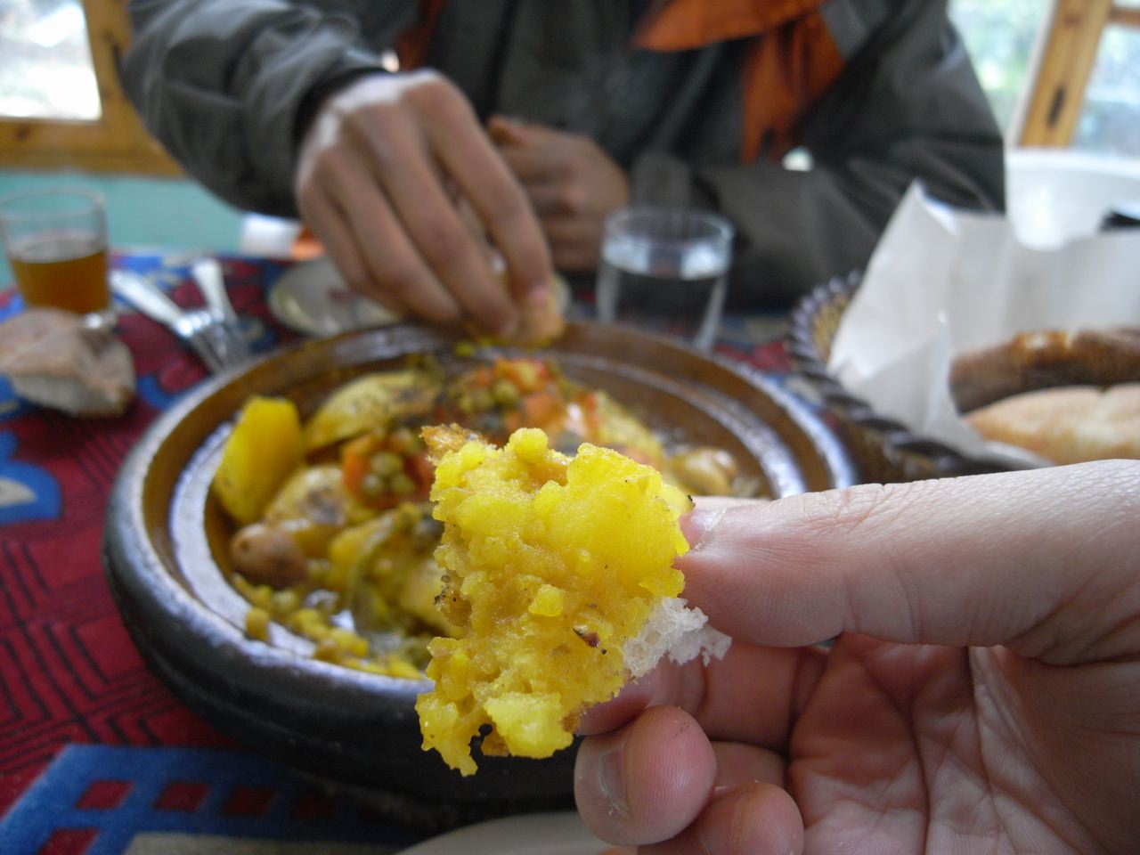 12:12 お昼ごはん ちぎったパンを右手に持って、よく煮込まれた具をこんなふうにこすりつけて食べるのが流儀だそうです。