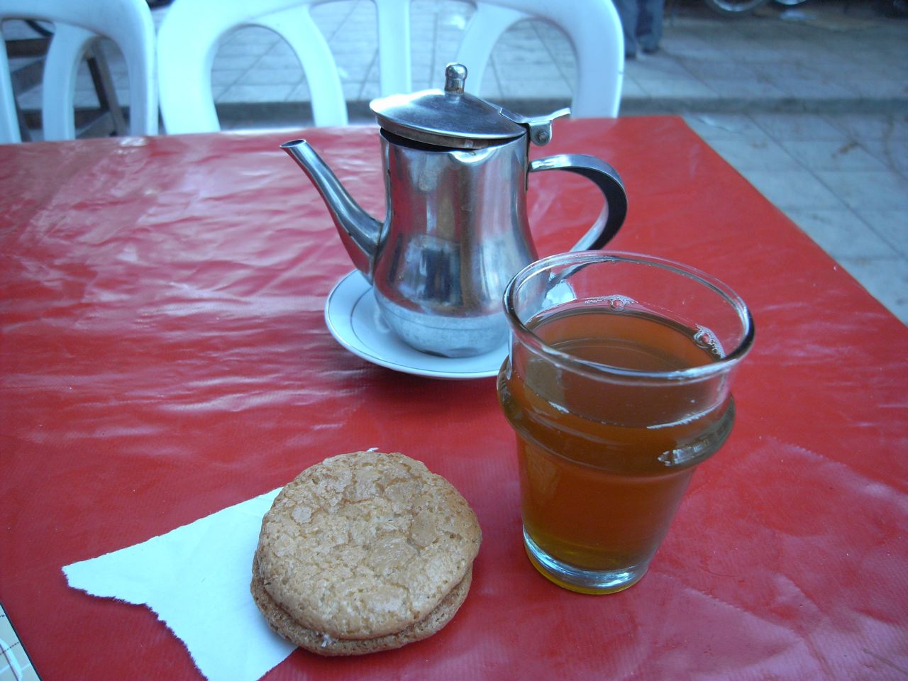 市街を散歩して、程よくお腹がすいたところでティータイム。この国のミントティーは半端なく甘かった!