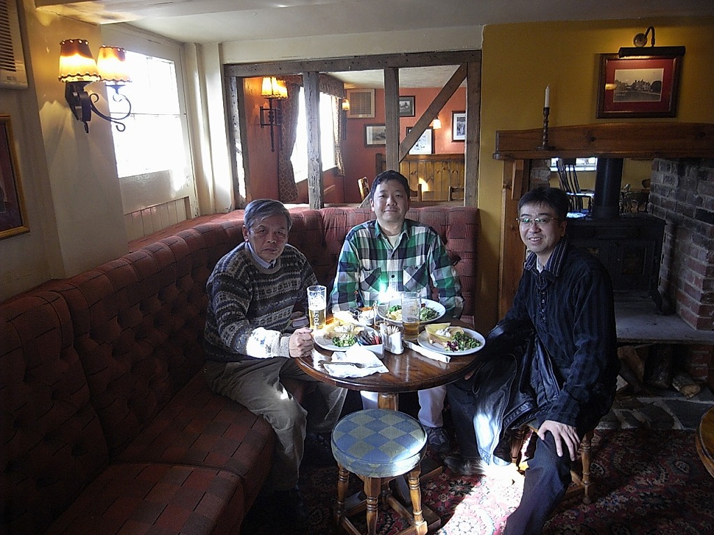 13:16 昼食は途中のパブにて。巨大なソールズベリー大聖堂のピナクルは車窓から見学。