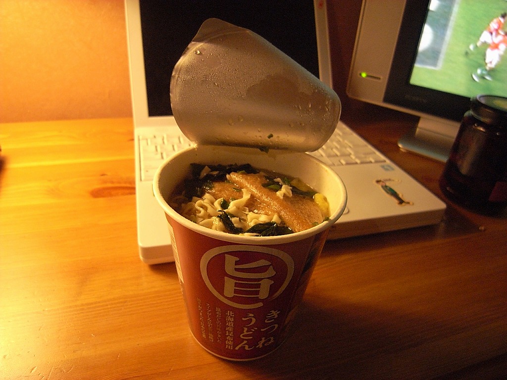 17:54 ホテルへ戻り、小腹がすいてしまったので、出張者からおみやげにもらってあってカップうどん。