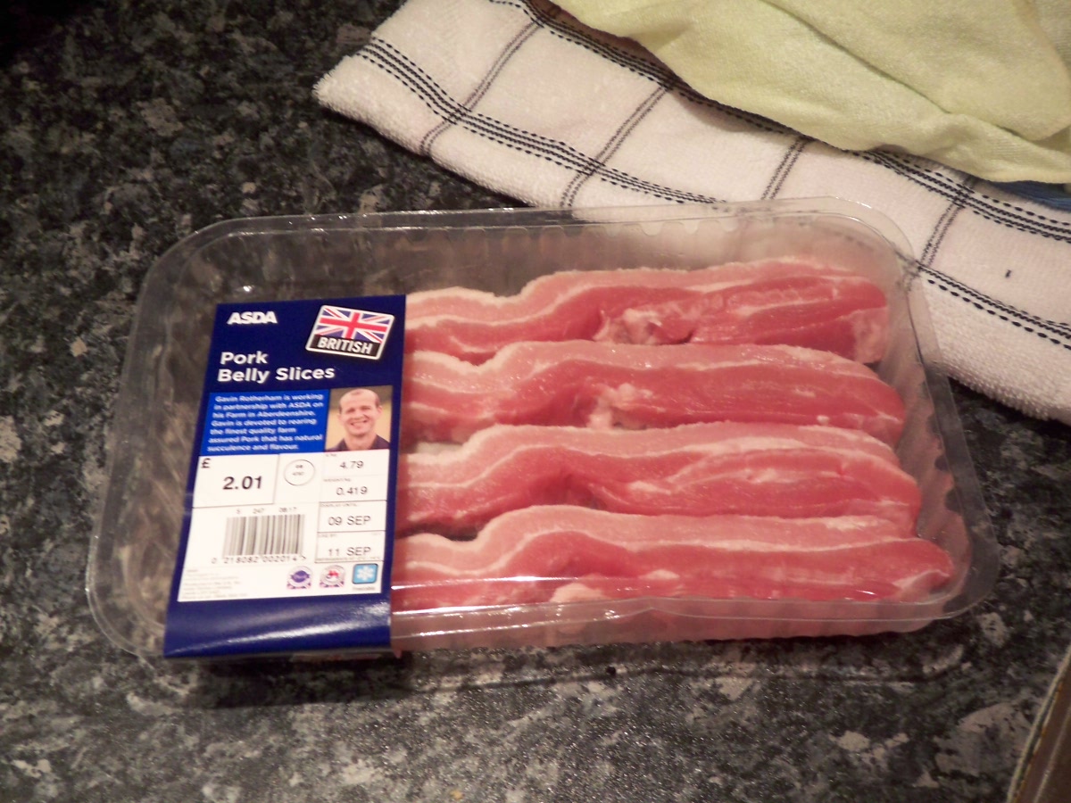 薄切りのバラ肉とか売ってないので、この大きなお肉を細切れにします。