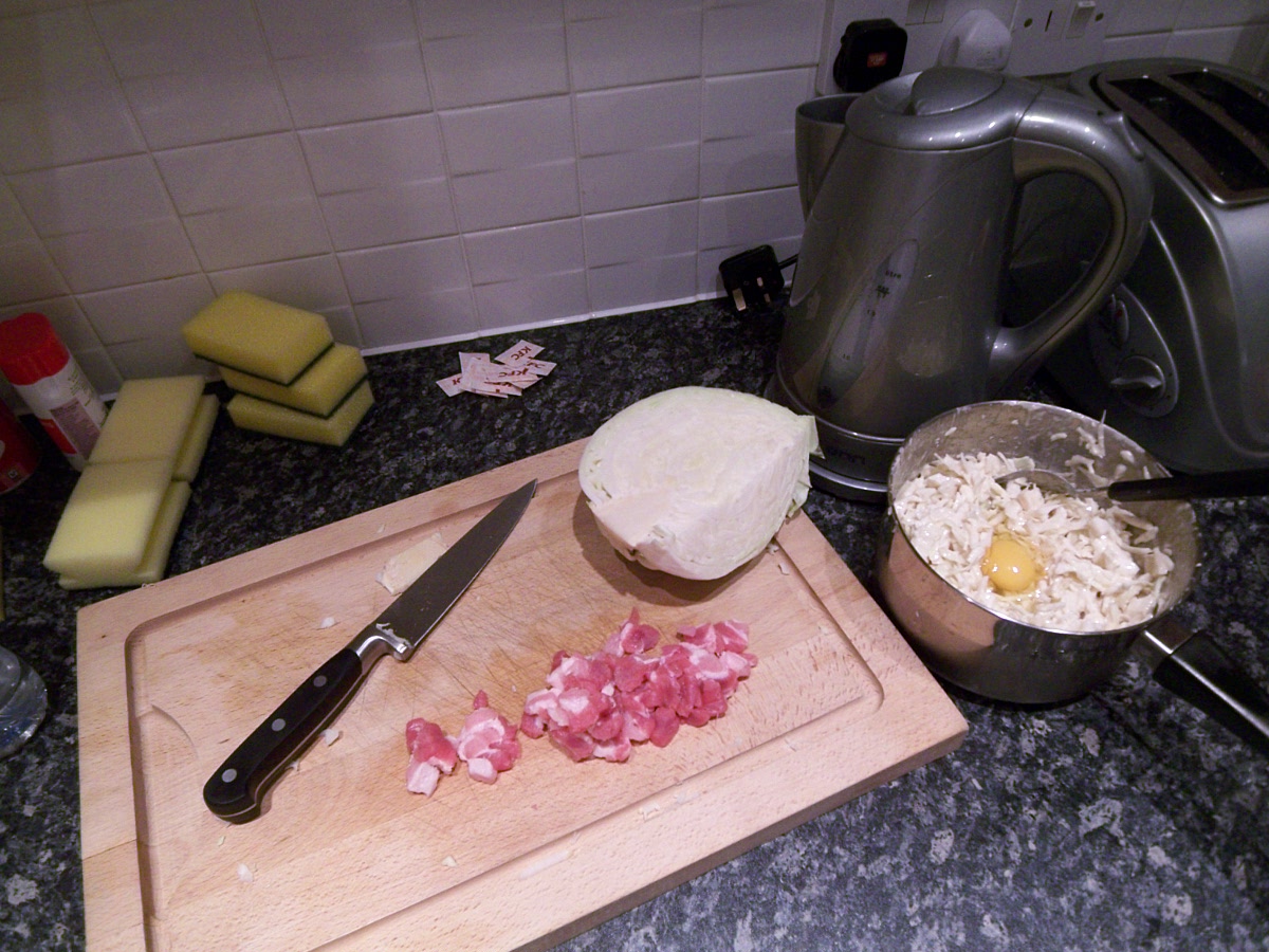 キャベツと小麦粉を処分したかったので、今日はお好み焼きに挑戦しました。