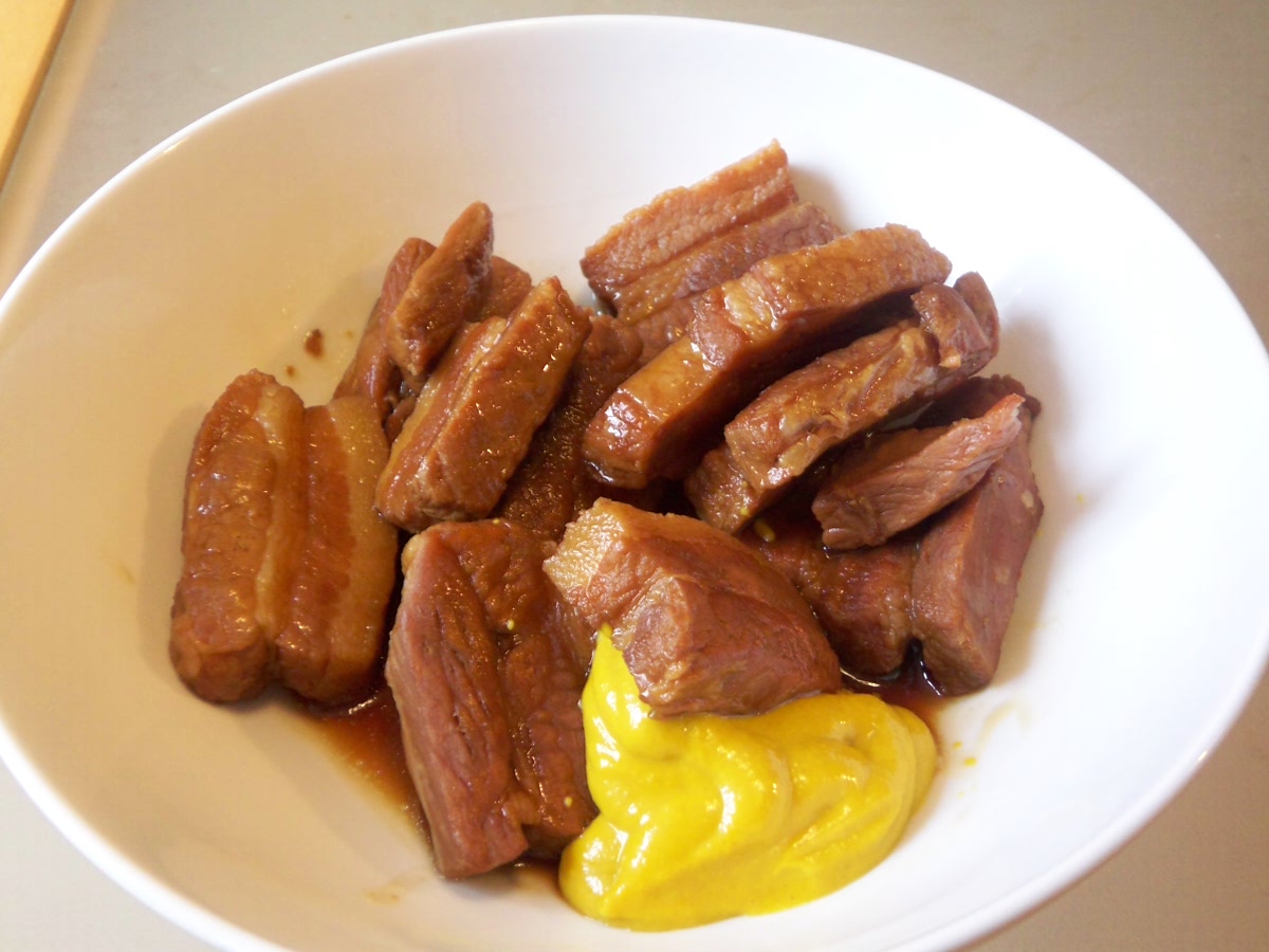 16:28 これは誰がどう見ても角煮でしょ。砂糖と酒を使っていないのでテカりはないけど、味はそれっぽい感じ。実は炭酸のジュースとマーマイトで煮込んだのだ。でも、やっぱり角煮にはマスタードじゃなくて「からし」のほうがいいねぇ。