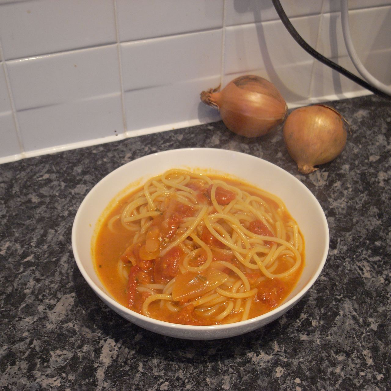 17:33 七面鳥と野菜のゆで汁にトマトソースを混ぜて、スパゲティ。これはおいしかった。