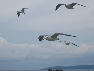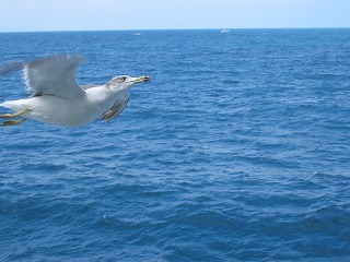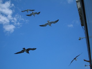 佐渡のウミネコちゃんたちもお見送りです。