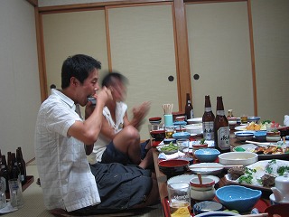 ここでちょっと、お昼寝。元気なMくんは半裸になって海水浴。