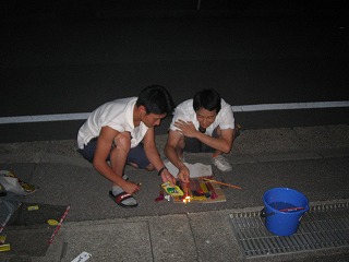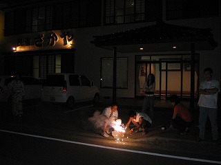 ここでは7月中旬、夜の海にたいまつを持ってサザエ狩りをする