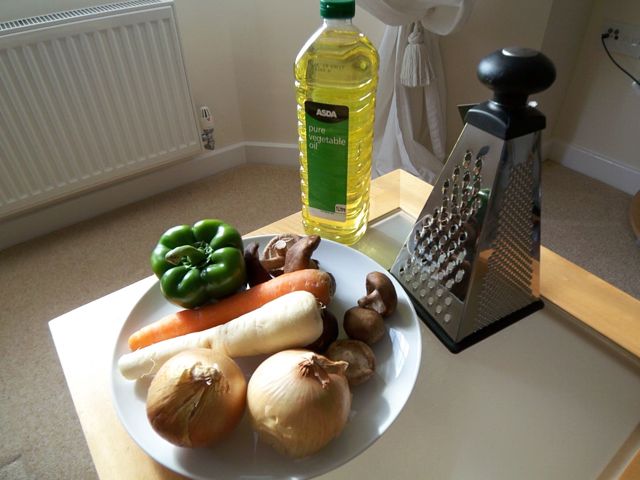 食材のほか、おろし金もわざわざ買ってきました。サラダ油も初めてです。