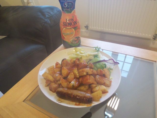 17:21 夕飯はソーセージのパンとベイクドビーンズ。