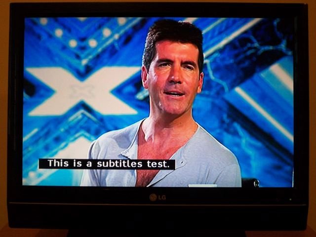 今さらながら、テレビに字幕を出す機能を発見。早速、毒舌のオーディション番組「Xファクター」を見てみたけど、あまりに毒舌なためか字幕がサービスされてない…。