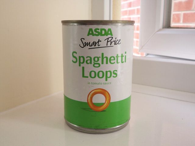 16:16 お昼を食べるタイミングを失ってしまい、遅いお昼ごはん兼、早めの夕ごはん。麺は、どんなもんだろうと思って買ってみた15ペンスの缶詰。