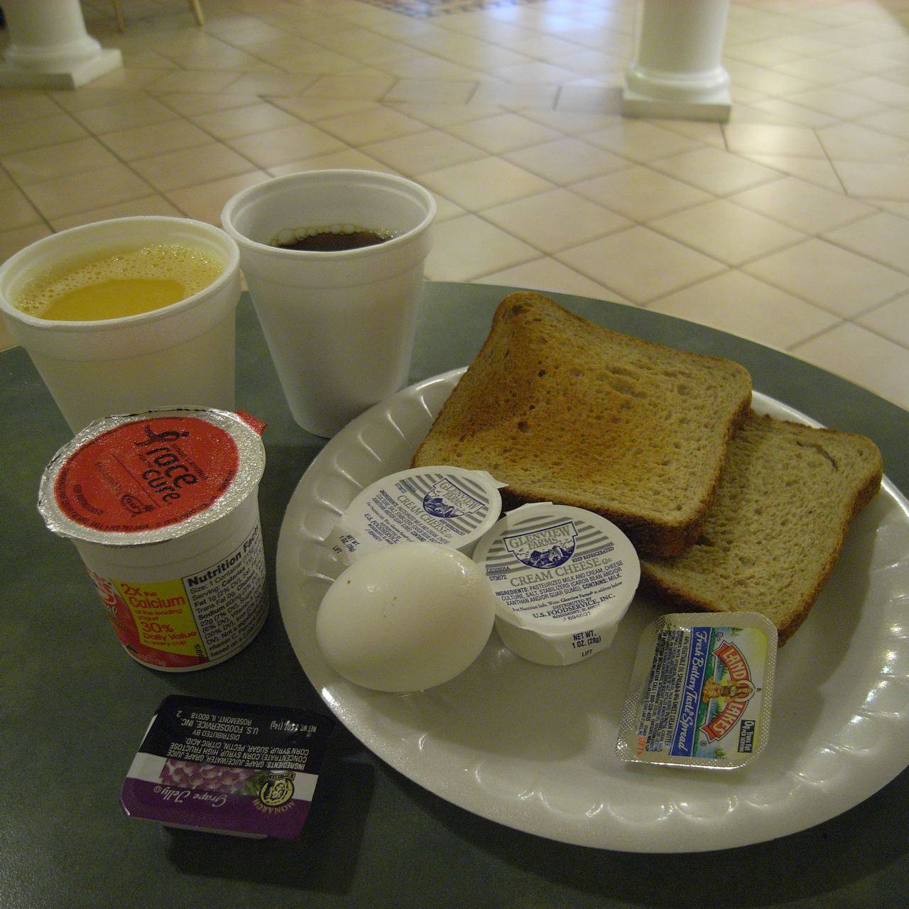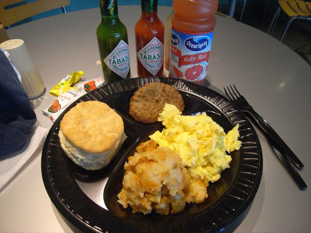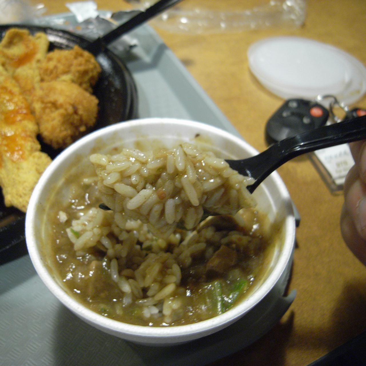 ちょっとだけ、って言ったのに、こんな盛り付け。これが最小らしい。それもそのはず、あとで値段見てビックリした。これで、たったの1.99ドル。他の人たちはこの倍以上もある量をむしゃむしゃ食べてるのだ。