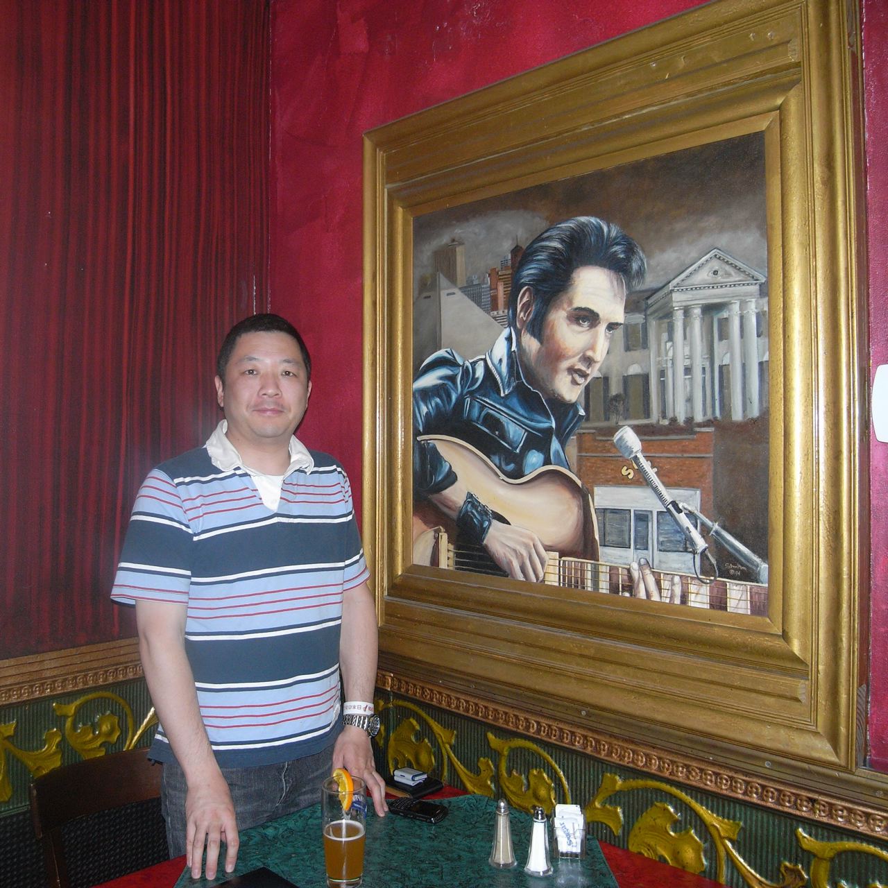 20:53/19:53c メンフィスといえばこの人、エルビス・プレスリー(の絵)と一緒、夕ごはん。