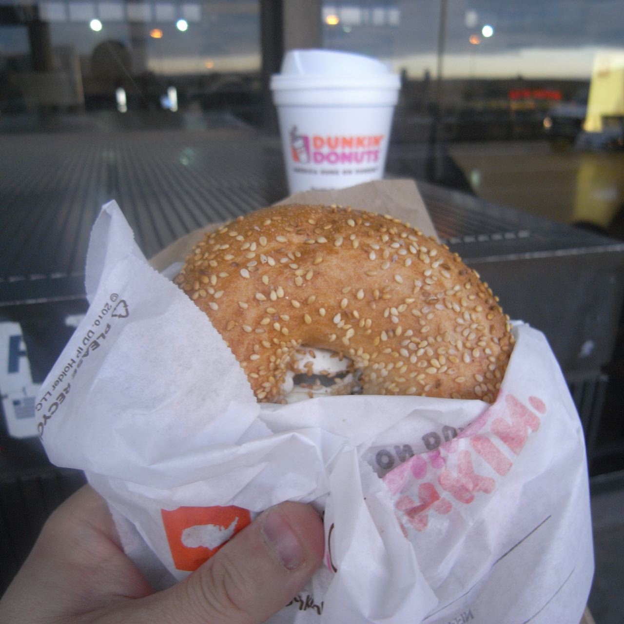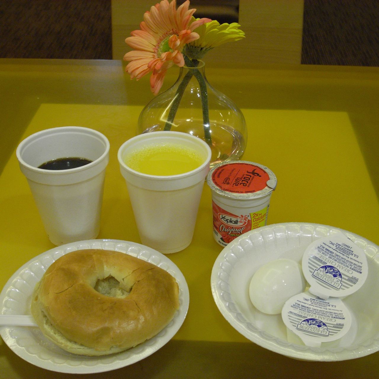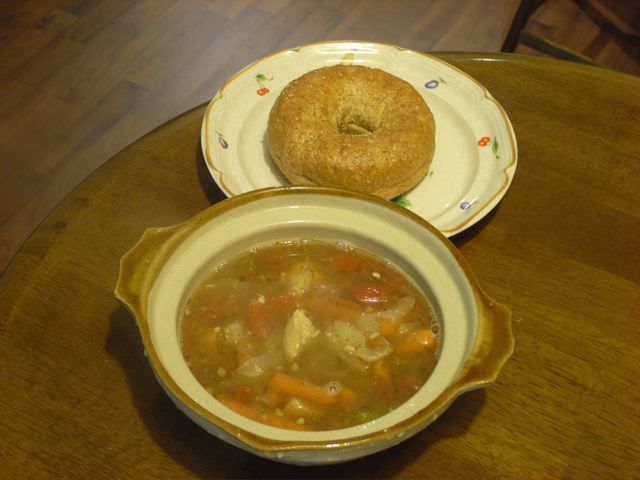 土曜日の朝ごはん。ベーグルって冷凍しておいたのをレンジでチンしても美味しいんだねぇ。