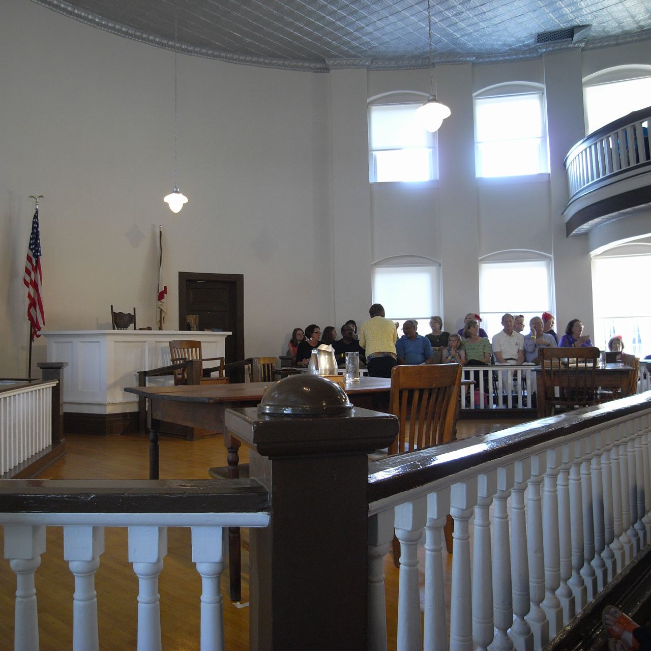 何と、本物の裁判所。つまり、原作の舞台、そのまま使うってこと。しかも役員さんに特等席へ案内してもらいました!