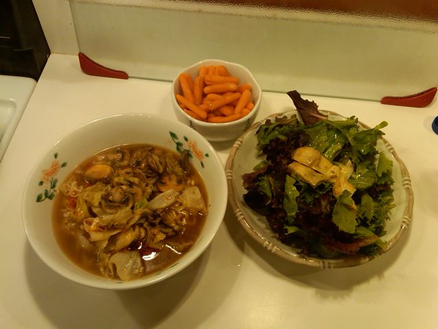 翌日から出張なので、あるもので済ませる晩ごはん。