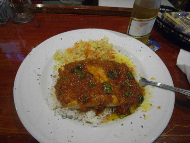 ふらふらっとダウンタウンを散歩して、適当な店に入った。すすめられたのは、サーモンのタイ風グリル。普通に美味しかった。