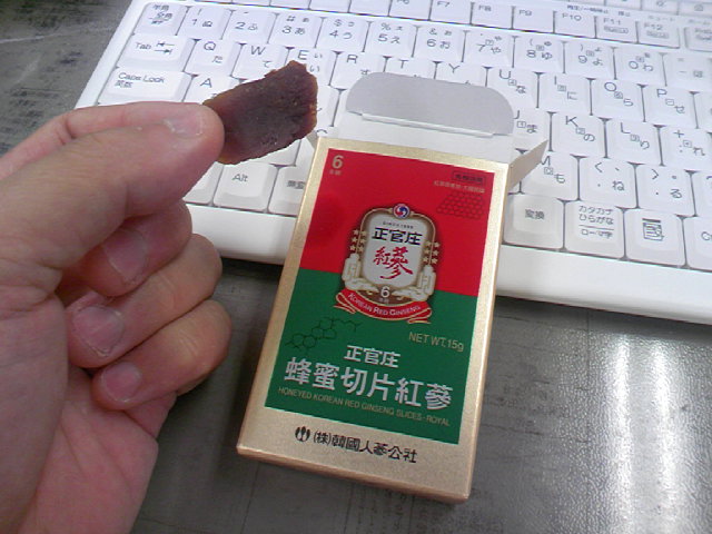 仕事中は朝鮮人参のはちみつ漬けでスタミナ補給。