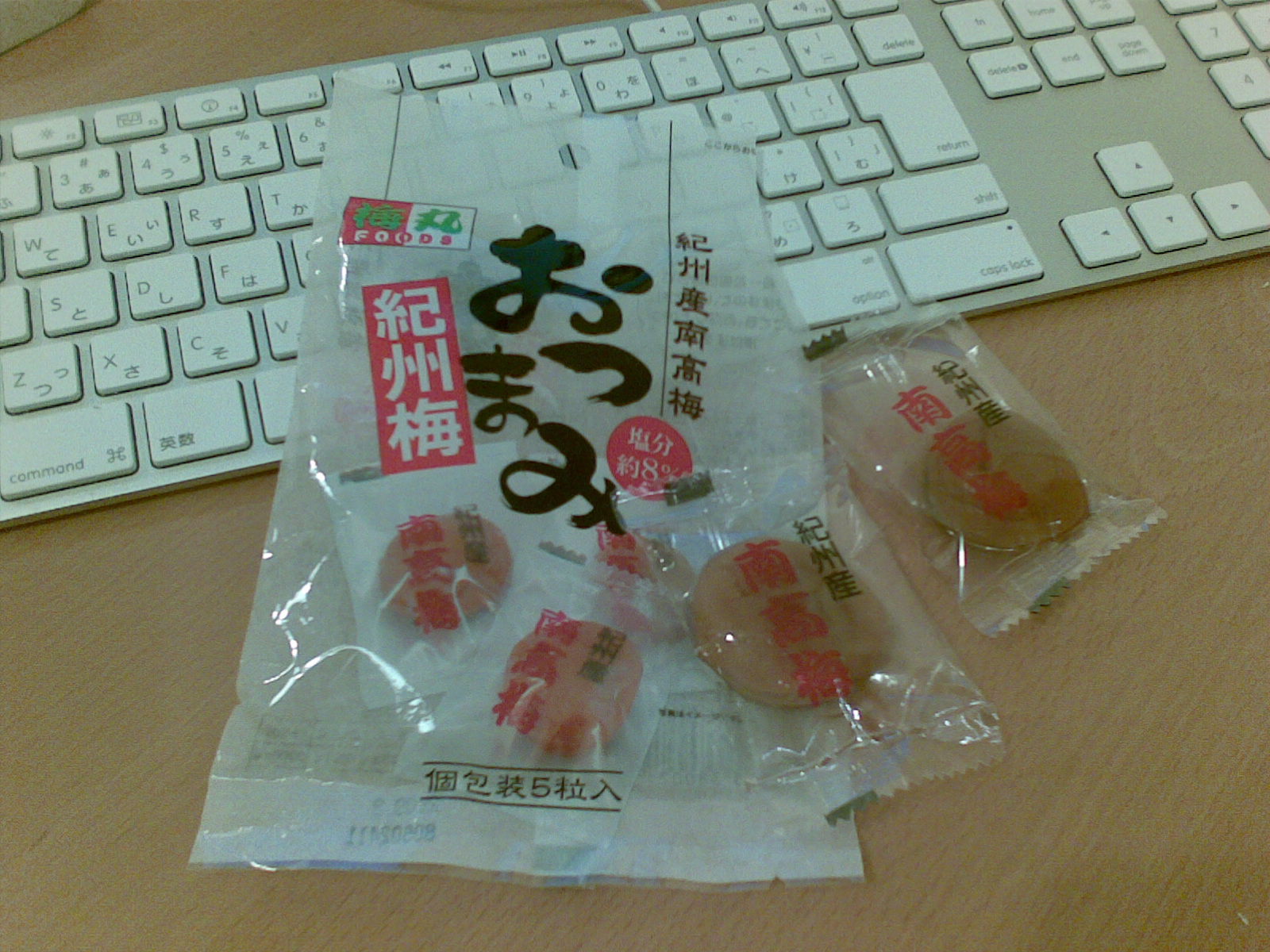 21:30 ちょっと口寂しくなって、何かないかと探したらちょうどいいのがありました。M井さんからもらった梅干し! 日本の味を懐かしむようになってきたのだろうか。おいしくて、ゆっくり味わう間もなくぺろりと5粒いただいちゃいました。ごちそうさまでしたー
