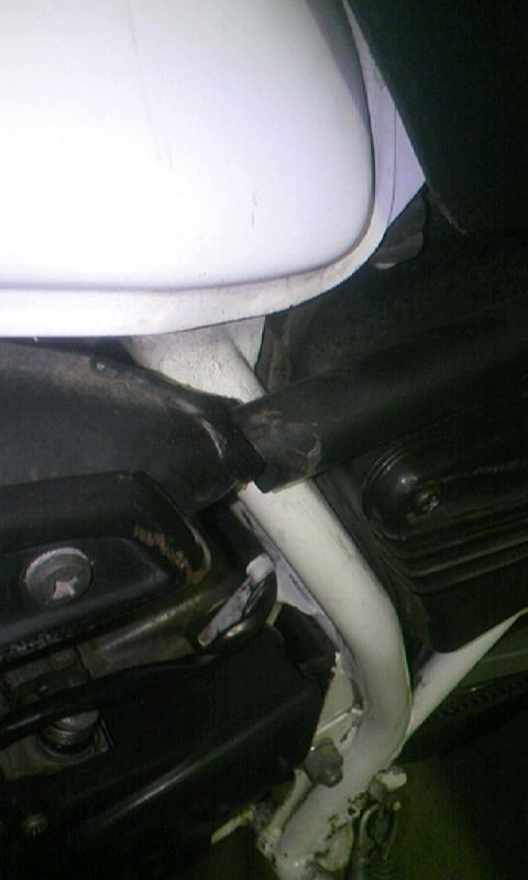 ずいぶん派手な音すると思ったら!マフラー折れてるじゃんかー!