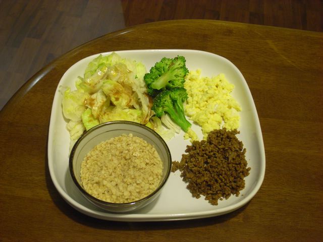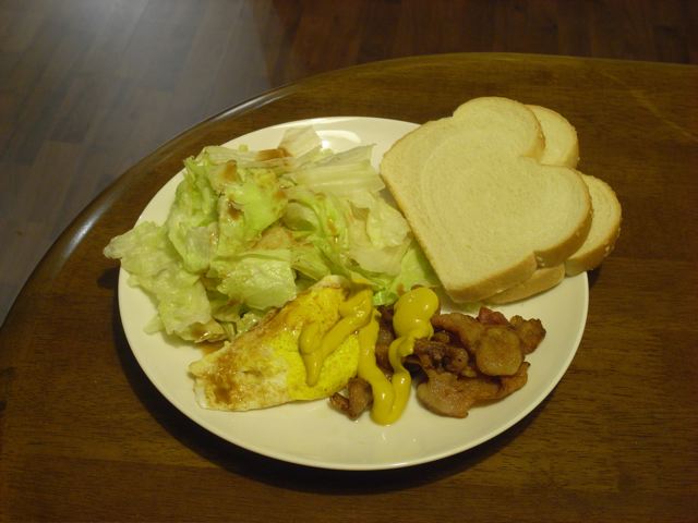 金曜日の三食。朝はお昼と同じ。夕飯に食べたかつ丼は、たぶん美味しいかつ丼を食べたことない人が見よう見まねで作った感じだった。