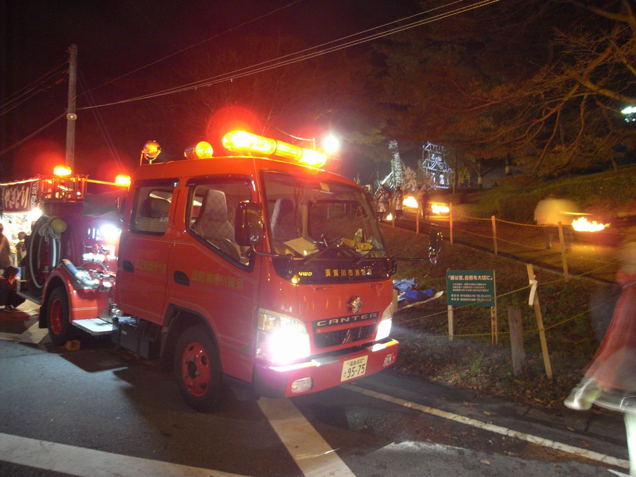 豪快な火祭りということで、消防団も大勢出動してました。お疲れさまです!