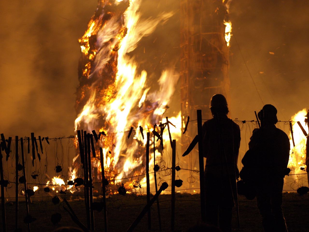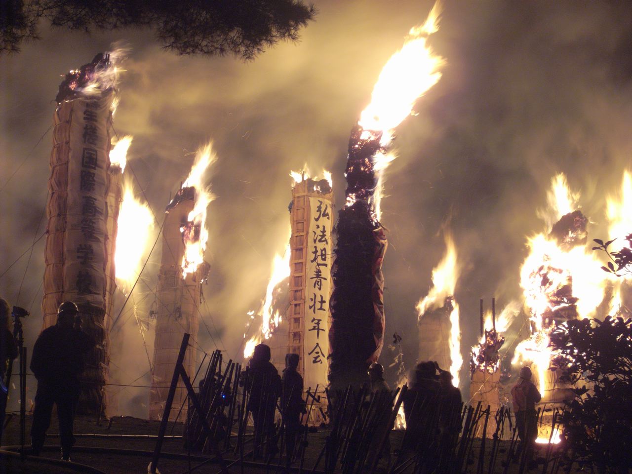 巨大な松明に次々と点火され、しばらくすると目の前は火の海。