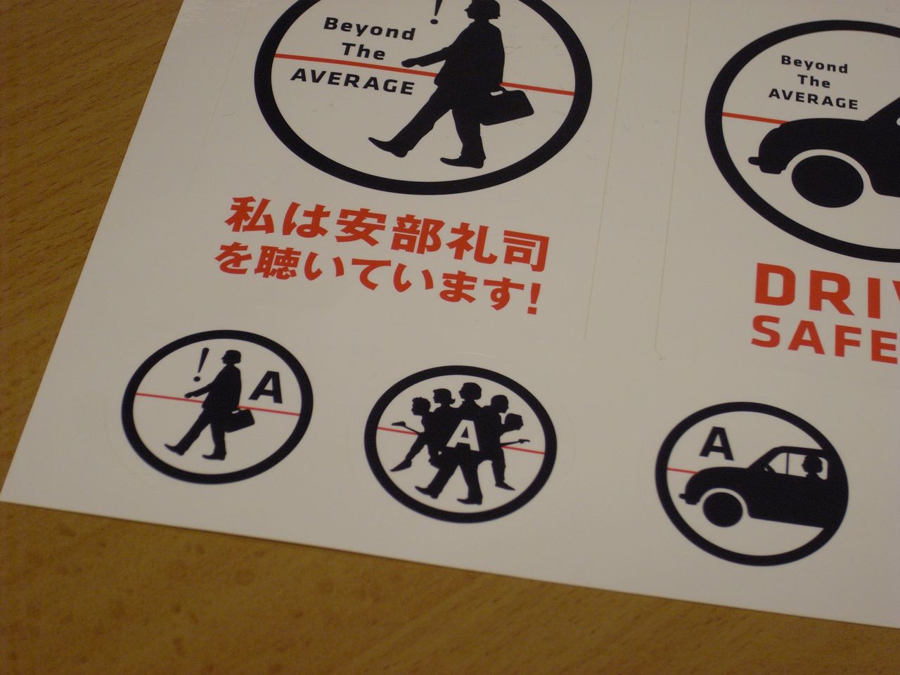 これは嬉しい、安部礼司ステッカー。この絵柄を見て、うぉーBOφWYだよーと気付いたあなたは同年代。