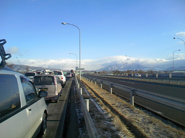 すぐ先で渋滞してます。
