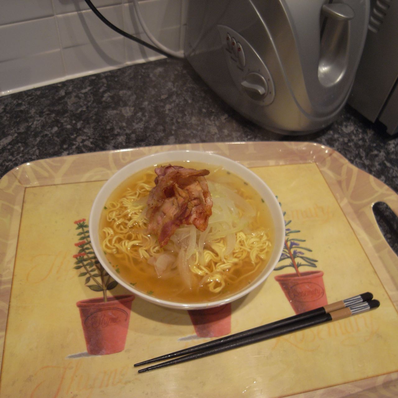前に同じホテルに泊まった同級生が「カリカリベーコンいいよねー、うちじゃ怒られちゃうよねー」と言って喜んで食べていたのだけど、その時はそれほどカリカリ派ではなかった。しかしベーコンを炒めていると面白いように脂が出てきて、それを見てるだけでダイエットしているような気分になるのが心地よい。しかし、キッチンが汚れてしまうのは何とかならないものか。とは言いつつ、気がつけば今日は朝から夜までカリカリベーコンばかり食べてました。