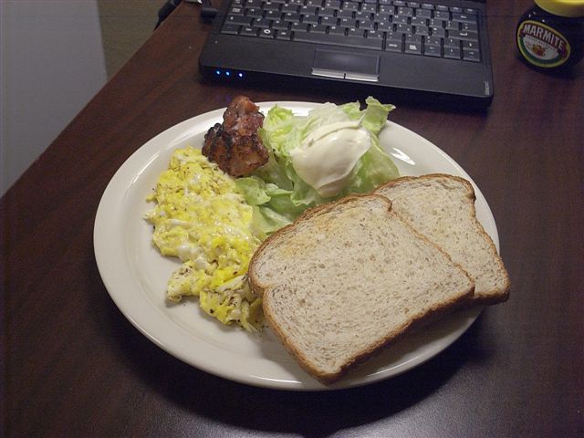 カリカリベーコンは少し焼き過ぎ。でも、取り上げるタイミングを自分なりに会得できたような気がする。