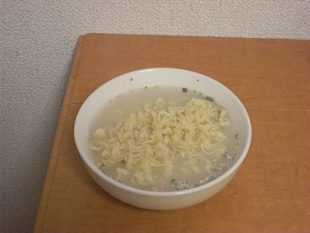 6:23 インスタントには手を出さないようにしていたのだが…。この気楽さに負けてしまった。調味オイルを入れないあたり、せめてもの心配り。