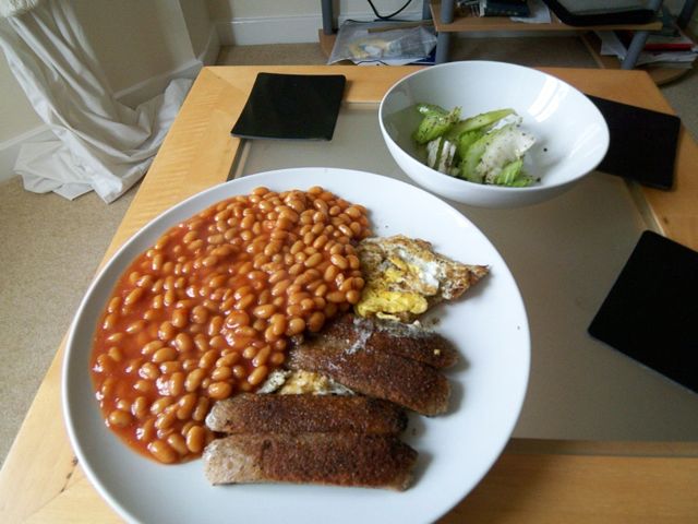 やっぱり僕は味音痴かもしれません。昨日のベイクドビーンズとまったく味の区別ができません。もしやOEMで供給元が同じなのでは?と思って成分表示を確認してましたが、いくぶんデータが違うので別物のようです。こちら、お値段51ペンス。昨日のとも20ペンスの価格差があるのに・・・。