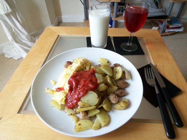 9:09 昨日、こちらに来て初めて卵を買いました。15個入りで1.5ポンドでした。油少なめだとうまく焼けないから、テフロンのフライパンを買ってこようかなぁ。
