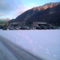 ゲレンデの駐車場よりも雪深い。今朝は-10℃。