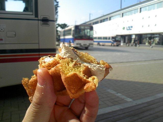 ローソンのチョコ&カラメルサンド。なんかフニャフニャだけどおいしいよ。