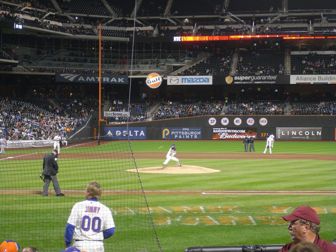 シェイスタジアム改め、去年できたばかりのシティフィールド。ここまで電車を乗り継いで、2時間ちょっとかかった。NHLのプレシーズンが始まっていたらしく、途中のターミナル駅ではデビルスのジャージを着た人をたくさんみかけた。