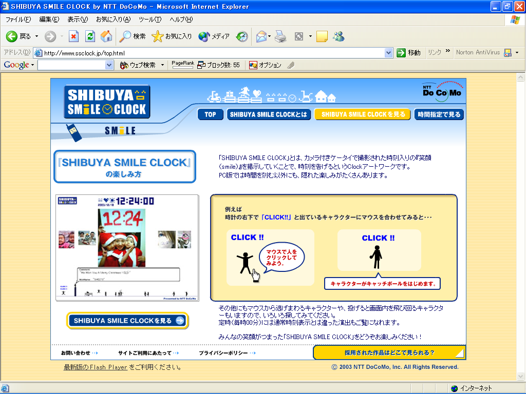 「SHIBUYA SMILE CLOCK を見る」というボタンを押すと、別にウィンドウが開きます。