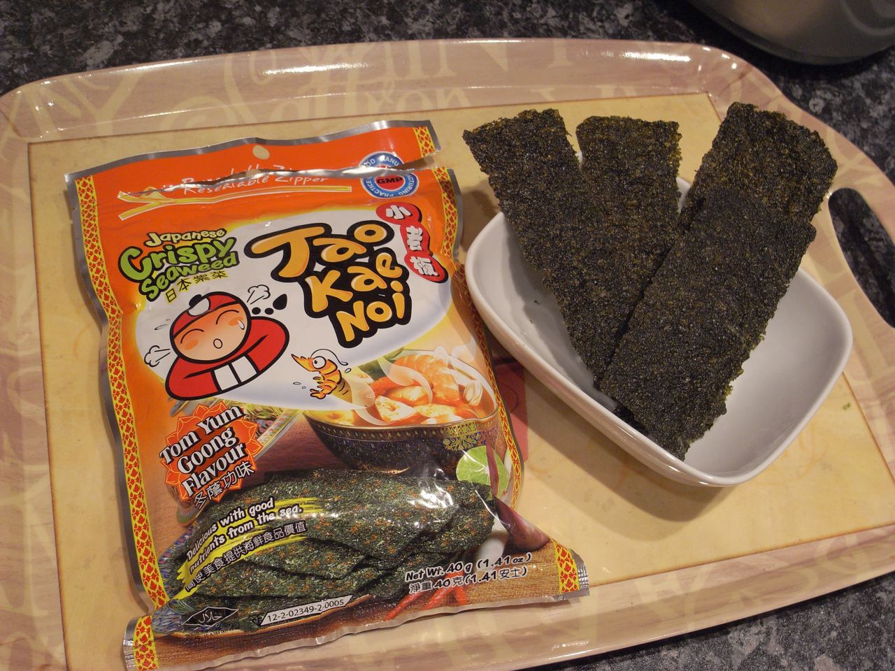 日本のおつまみということで、ジルさんが僕に買ってきてくれたんだけど、どうやらタイで作られている韓国海苔のようなものですね。ピリ辛のトムヤムクン味で、今日のワインにぴったりでした。