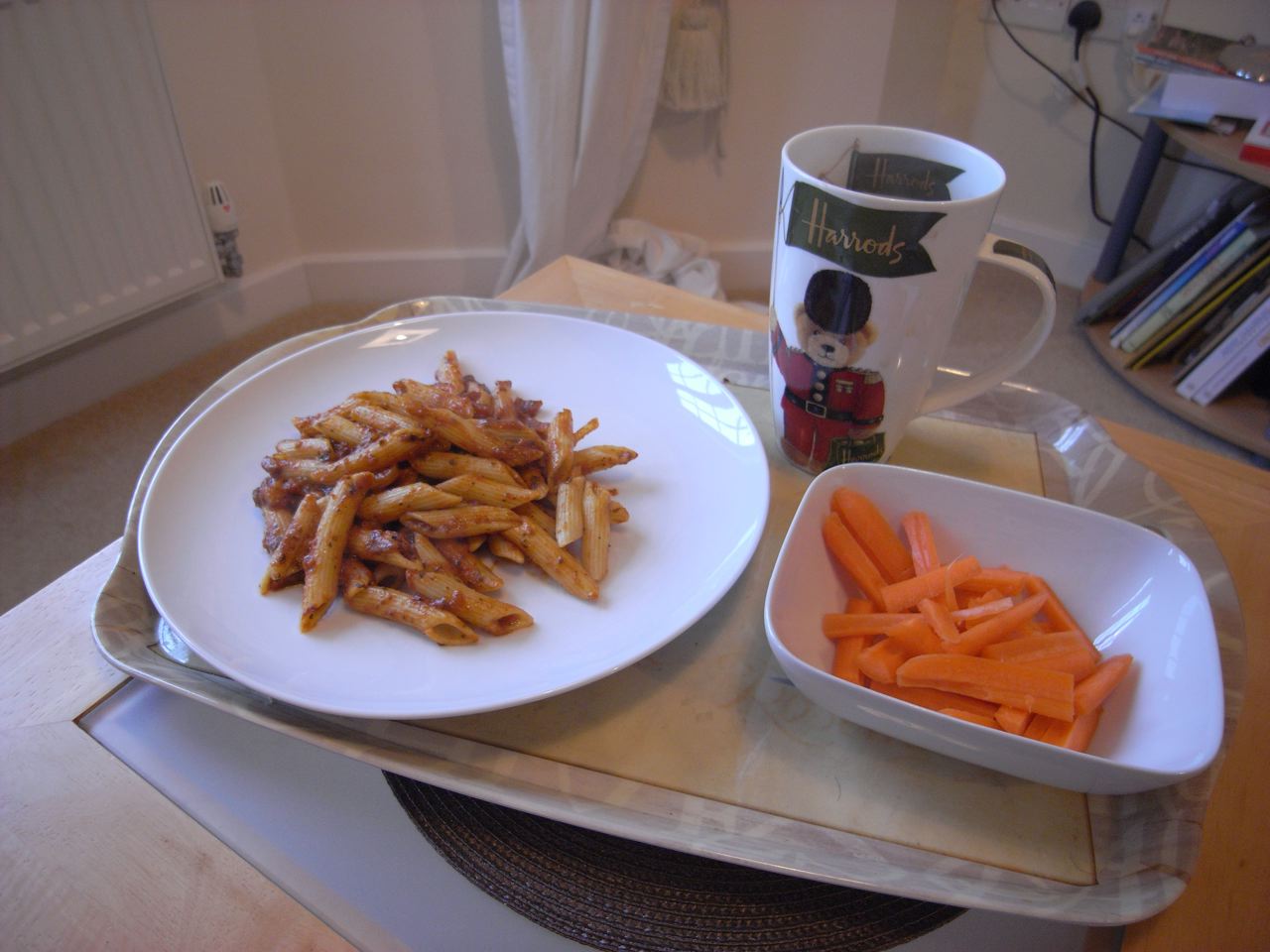 18:38 パイ缶。写真は半分だけど、残しておいても食べるチャンスがないな、というわけで、丸ごと食べちゃいました。半分で1471って、どんだけカロリー高いんだよ!と思ってビックリしたんですが、よく見たら単位がキロジュール。丸ごと食べても704キロカロリーだったというわけで、ひと安心。
