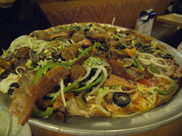 18:01 迎えに来てくれた同僚夫妻と夕食。ピザとステーキが恋しくてたまんなかったのだ。