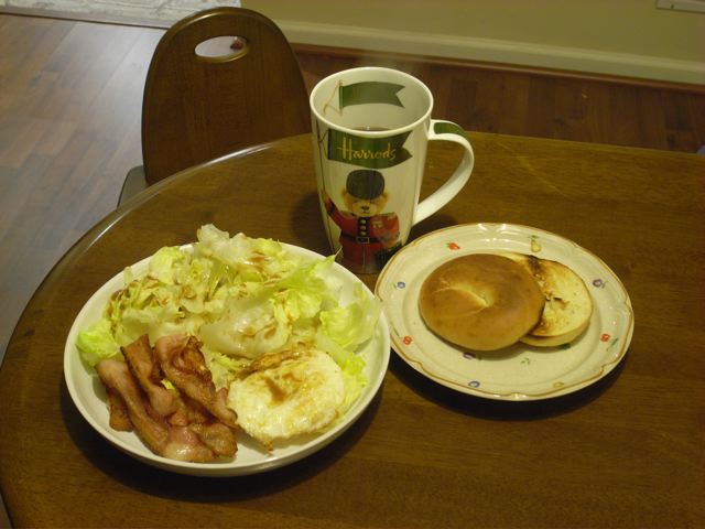 9:05 さっそくベーグル。あと、手作りビザ。