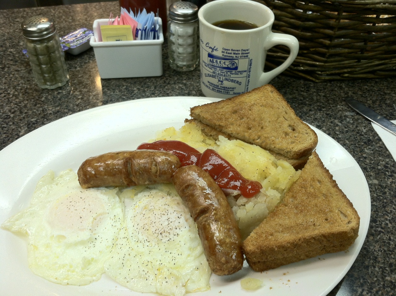 雪だからガラガラだろうと思って行った朝食屋。雪で会社休みになった人たちで満員だった。みんな考えること同じかー。